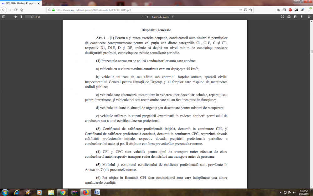 Adica, daca am o adresa a firmei prin care demonstrez ca ma duc la service(din zona), rezulta ca nu este necesar atestat....folosesc cardul, respect 561, oricum conduc doar 30-40 minute, nu se pune problema, si asta e...... Si la punctul 4 se spune: CPI si CPC sunt valabile pentru tipul de transport rutier efectuat de conducatorul auto, respectiv de marfuri sau de persoane. Dar daca nu face transport? Sa nu se inteleaga deplasarea(fara marfa) intre doua puncte de incarcare si descarcare, acesata sitautie face parte din transportul de marfuri