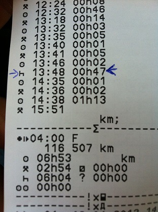 Salutari. Rog sa aruncati o privire peste urmatoarea chestiune... Cand stau prost cu timpul, rar, ce-i drept, sunt nevoit sa apelez la urmatoarea "magie": stau de exemplu 31 minute la rampa pe pat, astept sa se schimbe minutul la tahograf, dupa care misc masina 20-30 metri timp de 10-15 secunde, opresc si pun tahograful rapid inapoi pe pat, iar dupa ce se schimba minutul, acesta continua sa imi numere pauza, pana la 47 min de exemplu. Tichetul si diagrama de viteza atasate. Pe card sunt ok (totul e perfect), pe diagrama de viteze apare varful acela. Intrebarile mele sunt urmatoarele: 1. Ce risc? 2. Cum poate fi descoperita "magia" asta? Politia are posibilitatea de a suprapune perioadele de pauza de pe tahograf cu perioadele de pauza de pe card, pentru a detecta acest varf de viteza pe perioada mea de pauza de pe card? 3. Cunoasteti pe cineva care mai face "magia" asta si a fost prins? Daca da, care au fost consecintele? Multumesc. P.S.: Rog nu ma judecati, folosesc foarte rar magia asta, cam 1 data sau de 2 ori intr-o luna calendaristica, asa cum am spus, cand stau foarte nasol cu timpul. Am tahograf Siemens VDO v 1420