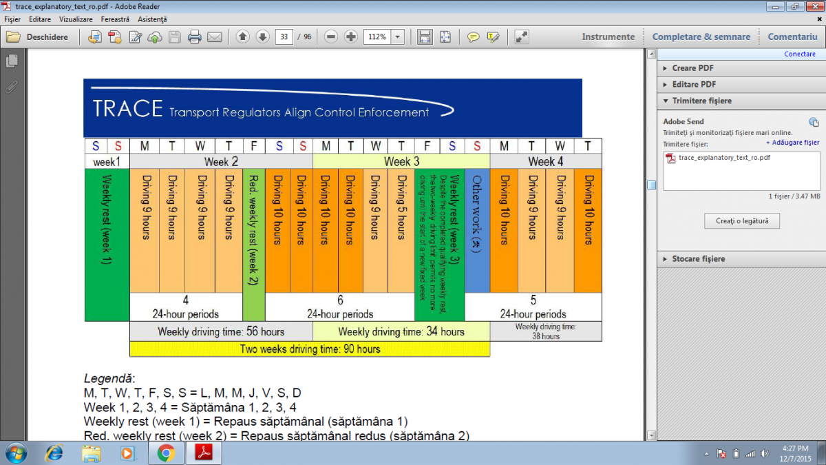 Members Mario Bandit Postat Ianuarie 25, 2016 Members Postat Ianuarie 25, 2016 Durata de conducere bisaptamanala se calculeaza la saptamanile calendaristice , adica luni ora 00.00 pana duminica ora 24.00 , 14 zile mai tarziu ( respectiv ce tine cont de calcul ora oficiala in statul unde e inmatriculat camionul nu utc ) si nu intre trei repausuri saptamanale . Sper sa nu fie nevoie sa repetam chestia cu Utc . Cate ore se aduna ?? Citează